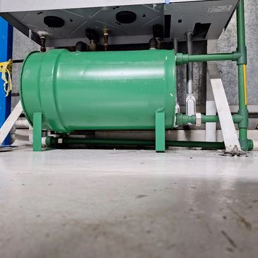 Intercambiador de calor, drenaje, agua helada, agua caliente, sistema de bombeo, cuadro de válvulas, drenado, protecciones, señalamientos conforme a norma etc.