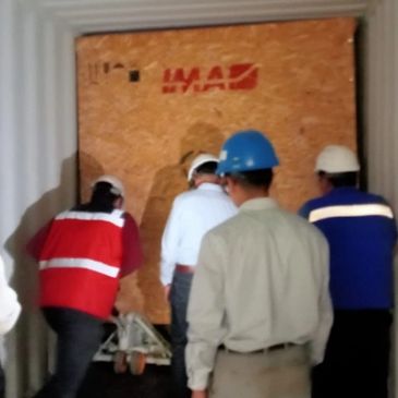 Descarga de equipos pesadas Mediante patín hidráulico, tortugas de plato giratorio, montacargas y accesorios de izaje.